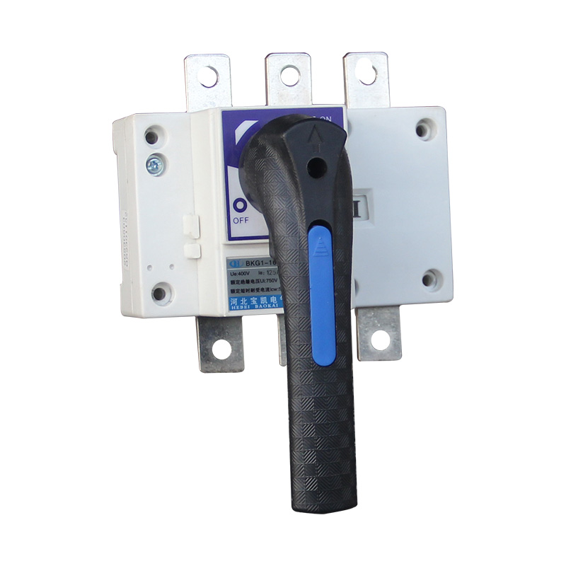 BKG1系列隔离开关适用于交流50/60Hz,额定工作电压至AC690V,额定电流为1600A及以下的电力系统中,可广泛用于电力、建筑、冶金及其它行业的配电系统和自动化系统中用于不频繁接通、分断和隔离电路之用,额定工作电流1000A及以上产品,只作电气隔离之用。BKG1系列隔离开关符合GB/T 14048.3《低压开关设备和控制设备低压开关、隔离器、隔离开关及熔断器组合电器》。