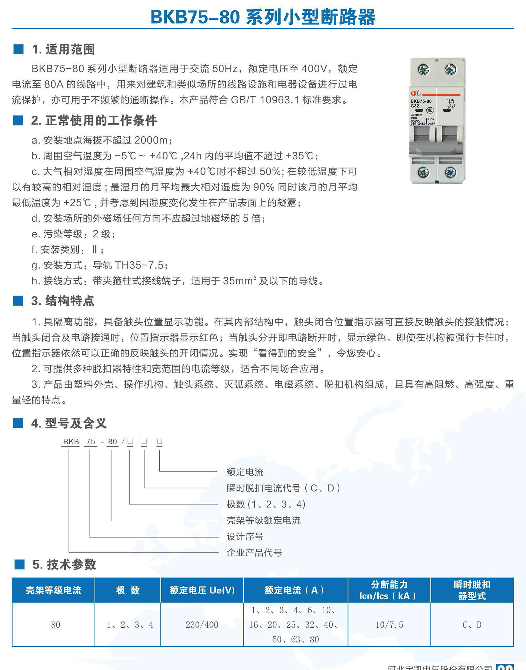 BKB75-80 系列小型断路器