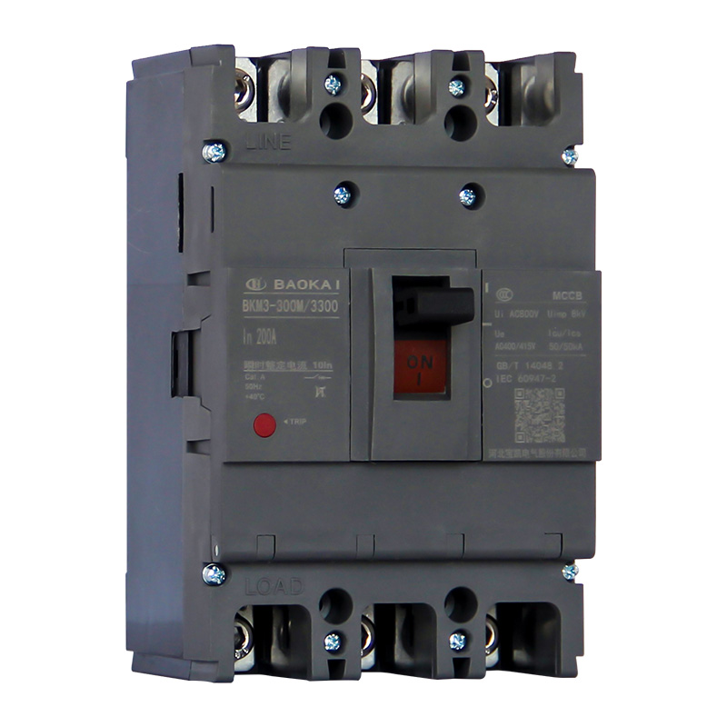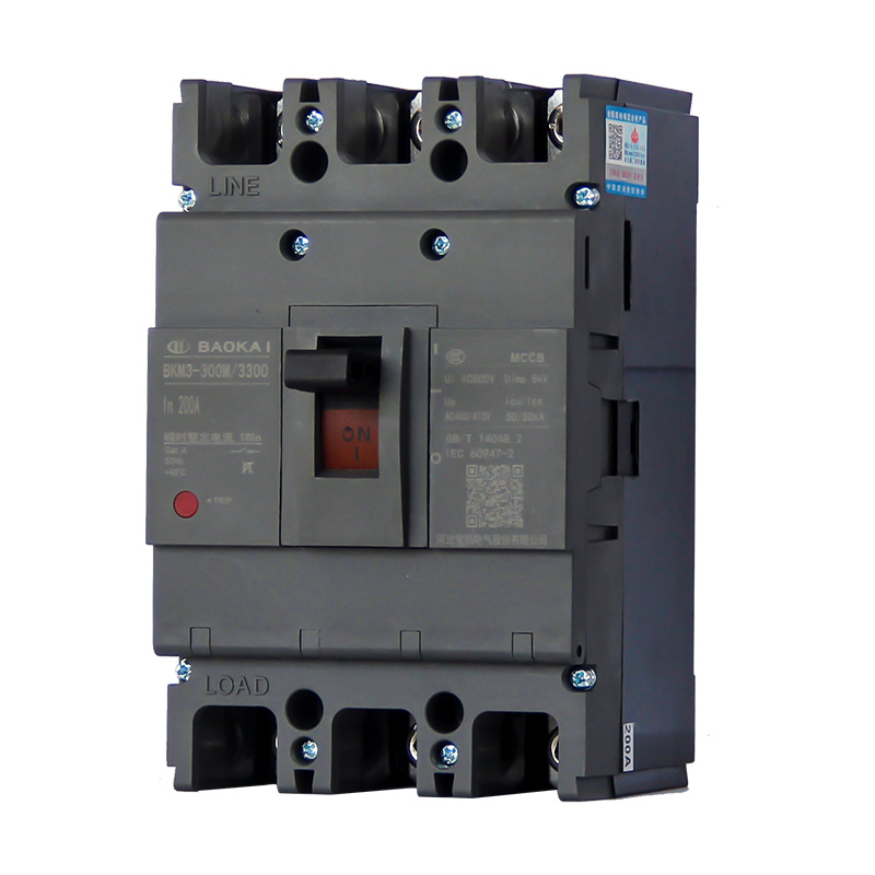 BKM3系列塑料外壳式断路器适用于交流50Hz,额定绝缘电压800V,额定工作电压至690V,额定电流至800A的配电网络中,用来分配电能和保护线路免受过载、短路、欠电压等故障的损坏。额定电流630A及以下断路器亦可作电动机不频繁起动用。本系列断路器具有体积小、分断高、飞弧短等特点。本系列断路器具有隔离功能。本系列断路器可垂直安装(即竖装),亦可水平安装(即横装)。本系列断路器执行标准:IEC 60947-1及GB/T 14048.1 《低压开关设备和控制设备 第1部分:总则》IEC 60947-2及GB/T 14048.2 《低压开关设备和控制设备 第2部分:断路器》IEC 60947-4及GB/T 14048.4 《低压开关设备和控制设备 第4-1部分:接触器和电动机起动器 机电式接触器和电动机起动器(含电动机保护器)》